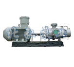 2GF法蘭式雙螺杆泵在工作過程中,螺杆與螺杆兩個以及螺杆與襯孔之間形成密封腔,液體經進口進入泵內,然後進入密封腔,隨著螺杆的回轉運動,由進口處平穩的被輸送到出口處.